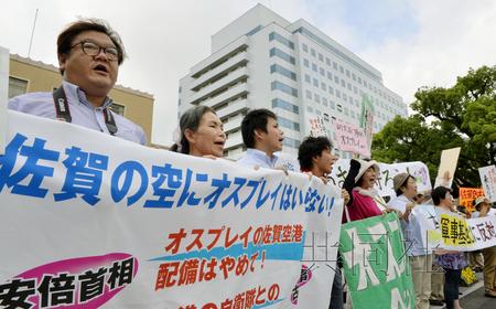 當天上午8點前便有市民團體成員聚集到縣政廳前。約100人喊出了“‘魚鷹’不要來”、“恐怕會發生墜落事故”。的口號。參加集會的佐賀市居民才津泰一激動地說:“提出部署太突然了。不知道什么時候會墜落,這對于居民來說是直接的恐懼!