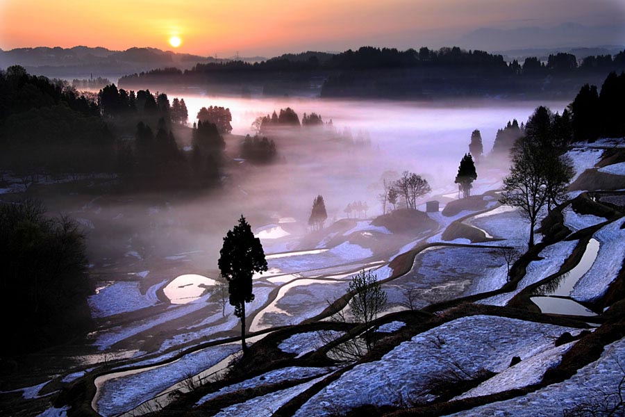 在新潟縣十日町市松代地區,有著獨特而美麗的梯田景觀。