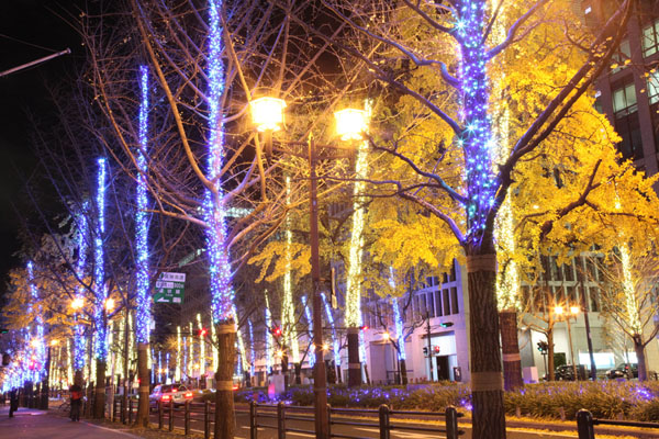 右圖:冬天的御堂筋燈飾(大阪觀光局提供照片)