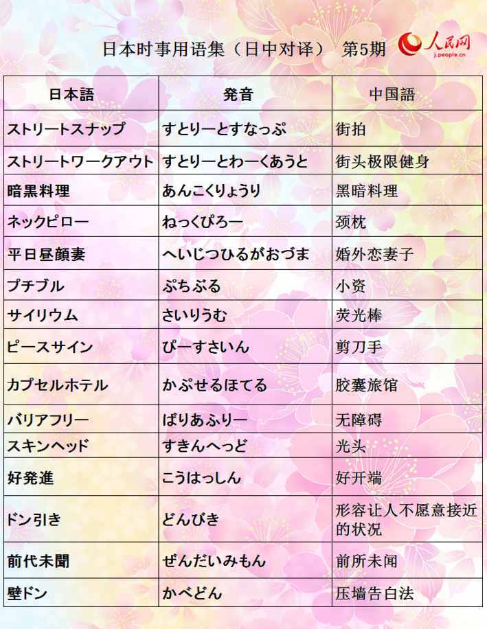 為方便讀者理解日本新聞,學習報道中的新詞,人民網日本頻道新開設《日本時事用語集(日中對譯)》板塊。板塊中廣泛收錄日本新聞報道中常用的政治、經濟、社會、文化等方面的詞匯,并將定期更新。希望該板塊能夠給讀者朋友們帶來幫助。