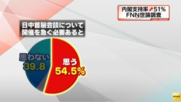 日本輿論調查:安倍內閣支持率再過半 54.5%民眾望實現中日首腦會談