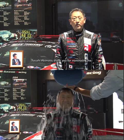 由于被AKB48之父秋元康點名,豐田汽車社長豐田章男在今天也加入了冰桶挑戰。在淋冰水后,他同時捐出善款,并且點名日產汽車副會長志賀俊之。