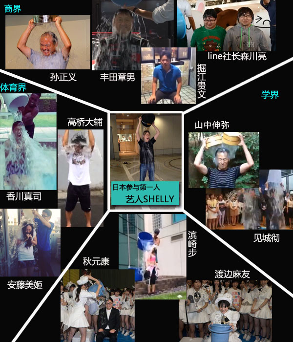 美國近日興起的 “ALS冰桶挑戰”的慈善活動迅速風靡全球。比爾蓋茨、扎克伯格、貝克漢姆、章子怡、劉德華...國內外各界大腕紛紛接棒。16日,日本藝人SHELLY在一檔節目中接受挑戰之后,日本各界人士也紛紛參與進來。