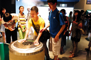 不僅是觸摸化石,整個博物館到處都可以讓大家體驗。像三棱鏡、回音罩等設施前,等著試驗玩耍的小朋友也擠得滿滿的。這讓我突然明白,要讓大家投入到自然科學的學習中,興趣很重要,而培養興趣還是要從體驗開始。此外,我也了解到,日本每個市都有這樣的博物館,而且來博物館體驗也是日本中小學假期指定的拓展教育點?梢浴巴妗钡牟┪镳^,誰會不喜歡呢?
