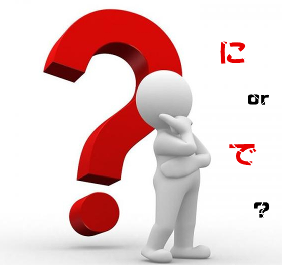 日語表示場所的格助詞有「に」與「で」,區別是「に」表示的是人或物以及狀態所處的場所或立場,而「で」則表示動作進行及行為發生的場所。也就是說,「に」表示人或事物存在的場所,是靜態的,「で」表示的是動作進行的場所,是動態的。