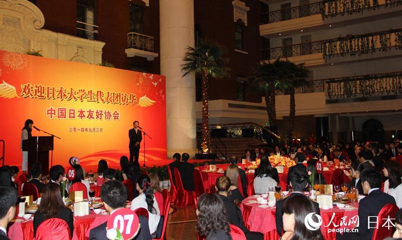 日本駐華大使館公使三上正裕為宴會致祝酒詞。他表示,中日兩國同屬排名前三的經濟大國,兩國的攜手合作對亞洲乃至世界的穩定發展至關重要,特別是加深年輕一代的相互理解和相互學習不可或缺。他說,雖然這次訪問只有短短的8天時間,看到的可能也只是一些表面的中國,但希望成員能夠以這次訪華為契機,對中國產生興趣,今后能夠多次來到中國,加深對中國的了解。