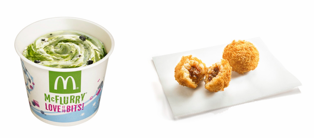 抹茶奧利奧麥旋風(左,售價276日元)、蘑菇雞肉球(右,售價199日元)