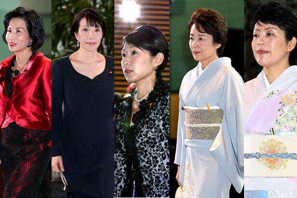 日本新內閣女性成員(左起)松島綠、高市早苗、小淵優子、山谷惠里子、有村治子
