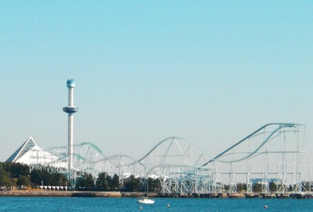 Surf coaster leviathan是日本第一座波浪云霄飛車,全程有一半建造在海面上,會讓人覺得自己快要被拋到海里去了。特別是黃昏時分,在夕陽的余暉下,海面和軌道交織成一幅美景,動人心弦。