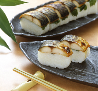 烤青花魚壽司是一種把烤至金黃的青花魚放在米飯上的模壓壽司。即便米飯變硬,用微波爐熱一下,又可以恢復松軟美味。不過,這種烤青花魚壽司要避免陽光直射和高溫,應在常溫(25度)下保存。根據季節變化,有時也需要冷藏。