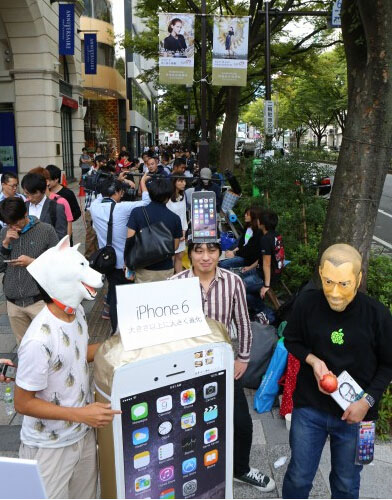 今日蘋果iPhone6正式開始發售,從昨天開始東京銀座、表參道等 Apple旗艦店門口排隊的人陸續增多。據《每日新聞》報道,截止今天上午8點,在表參道排隊的人數超過1000人。