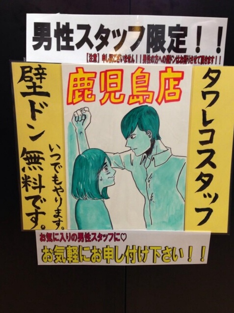 Tower record AMU Plaza鹿兒島店推出了免費“壁咚”服務,引發網絡熱議。