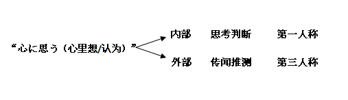 在日語中,由于我們并不知道他人心中在想什么,所以“心に思う(心里想/認為)”這一行為的主語僅限第一人稱。如果想要表達他人心中所想,就需要使用“らしい”、“ようだ”等表示傳聞、推測的助動詞。