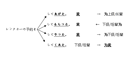 對話一般發生在說話者和聽話者之間,當其中出現物的或動作的往來現象時,就形成了授受關系,我們一般稱其為“授受表現”。在日語中,像“誰為誰做了什么/誰給誰什么東西やる/あげる/くれる)”、“誰請誰為自己做了什么/誰從誰那得到了什么(もらう)”這樣的表達方式很發達,通過它可以看到,對話雙方之間的利害得失發生了轉移,一般我們稱“やる/あげる/くれる”為向右移動,稱“もらう”為向左移動。那么接下來,我們試試將下列例句替換成授受形式。