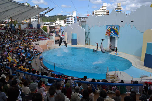 在大水槽里游泳的鯊魚、魚群,隧道水槽里遨游的海豚現場表演常年人氣不減,此外還能近距離觀看海龜等。