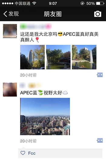 朋友圈被“APEC藍”刷屏