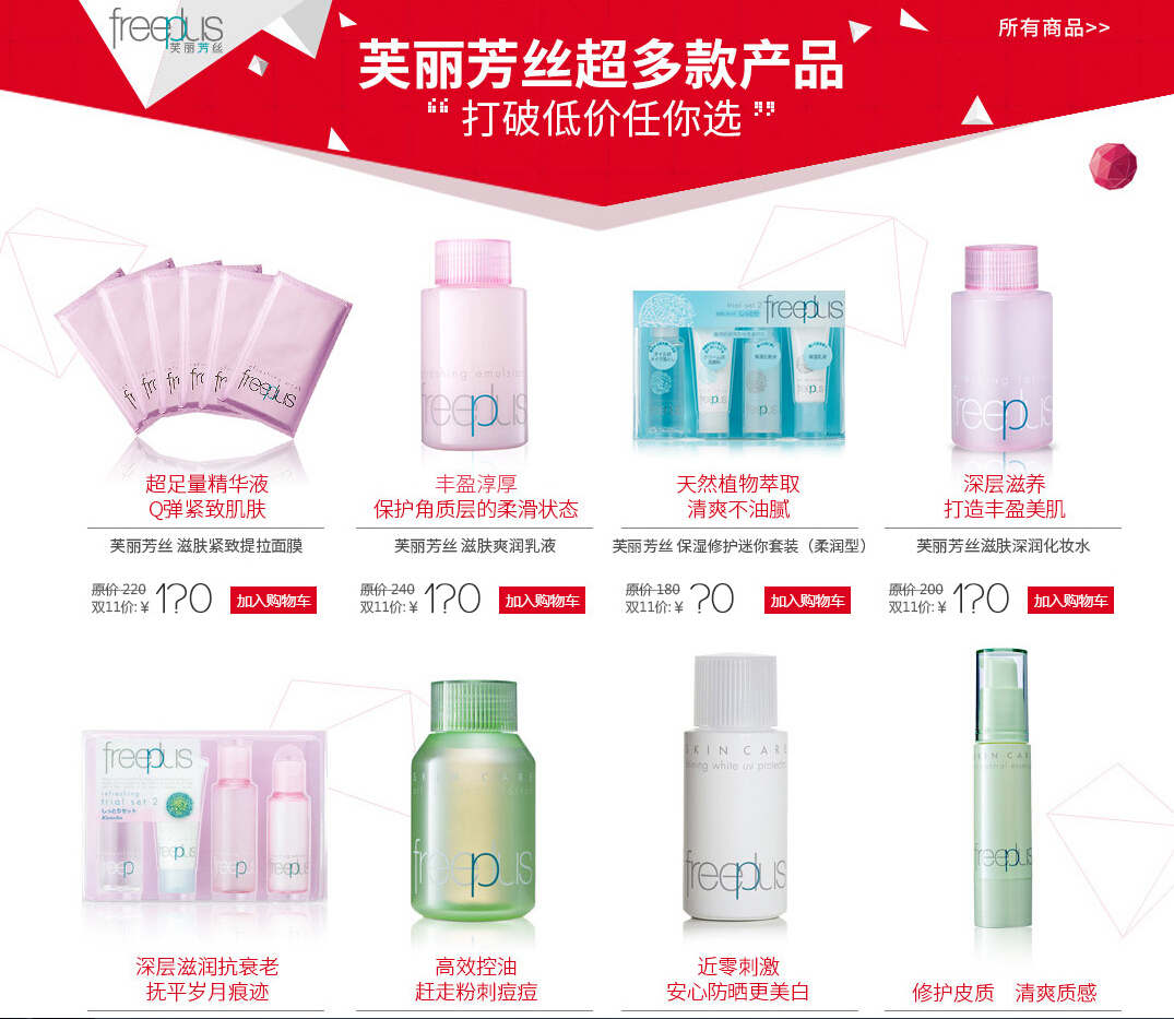 此外,freeplus、LUNASOL等旗下品牌都會在雙11當天有神秘折扣。Kanebo佳麗寶天貓旗艦店在雙11當天也會每4小時有1位全額免單,24小時驚喜不斷!