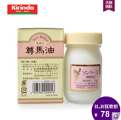 日本老字號藥師堂出品,100%馬油制成,全身適用的潤膚油,無添加配方,敏感膚質和寶寶都可以放心使用。因為馬油和人的皮下脂肪成分相似,有利于皮膚的吸收滲透,所以具有很好的保濕效果,可以用做化妝打底和臉部身體的保養,另外還具有抑制色斑,緩解皮炎和燙傷等功效。