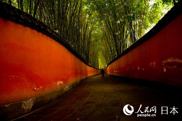 “丞相祠堂何處尋?錦官城外柏森森”。位于成都南門武侯祠大街的武侯祠,是紀念三國蜀漢丞相武鄉侯諸葛亮的祠堂,已有1500多年的歷史。成都的武侯祠是中國紀念諸葛亮的祠堂中規模最大的一座,其君臣合廟的建筑風格、大量的歷史人物塑像,在紀念性祠廟中也可堪稱別具特色。祠內翠柏森森、殿宇重重,布局嚴謹、莊嚴肅穆。后院有一條翠竹映襯的曲徑通往劉備之墓,曲徑兩旁的紅墻上飾有一排鬼瓦,一路守護著劉備的陵墓。