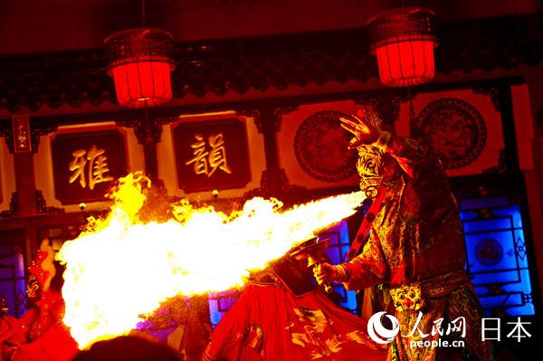 其中的“變臉”和“吐火”已經發展成為川劇表演藝術最富代表性的特殊技巧之一。 單人和多人同時在瞬息之間不露痕跡地變換十幾張臉,讓人在親眼目睹之后不禁拍案叫絶。而多人從口中同時吐出熊熊烈火的表演已是絕中之絕,更有絕妙之處在于吐火者還要以口接力,以火龍之勢變幻出不同的烈火煙型,實在讓人震驚!