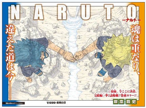 《周刊少年JUMP》50期上刊載了《火影忍者》的最后兩集,其中最終回采用全彩印刷。最后尾田榮一郎等JUMP作家團隊發表寄語,感謝讀者的支持。值得一提的是,在正篇完結之后,新篇《火影忍者》將于2015年春短期集中連載。同時,還將推出智能手機官方應用軟件,700集漫畫以及220集動畫都可以免費觀看。