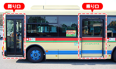 快到下車站時,按一下把手上的下車提醒按鈕(不然可能會不停),前門下車的時候直接投幣。如果不知道多少錢,把整理券給司機,他會告訴你的。(鳴謝:樂途社區)