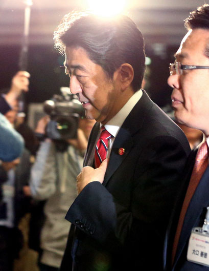 安倍晉三在參加了G20峰會后,于17日傍晚從澳大利亞回國。之后,他在東京都與共同執政的公明黨黨首山口那津男舉行了大約40分鐘的會談。媒體認為,安倍在會談中向山口通報了延遲提高消費稅以及解散眾議院舉行大選的考慮。(編譯:陳建軍)