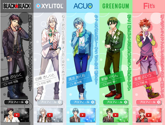 日本樂天將其五款口香糖擬人化,今日起在網上舉行“口之戀人——口香糖男友”大選。