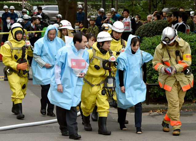 在位于日本東京都千代田區的東京metro線日比谷地鐵站附近,20日舉行了地鐵毒氣事件模擬應對演習。這是繼1995年東京地鐵沙林毒氣事件以來,首次由東京都政府舉行、并利用地鐵進行的大規模演習活動。