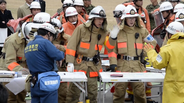 在位于日本東京都千代田區的東京metro線日比谷地鐵站附近,20日舉行了地鐵毒氣事件模擬應對演習。這是繼1995年東京地鐵沙林毒氣事件以來,首次由東京都政府舉行、并利用地鐵進行的大規模演習活動。
