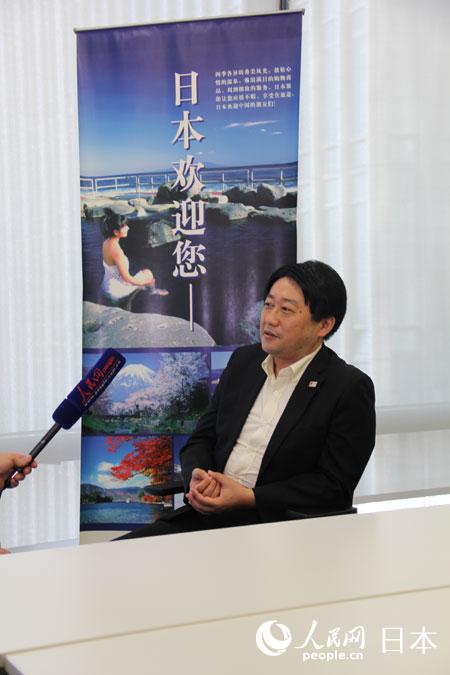 日本國家旅游局北京事務所所長伊地知英己接受人民網日本頻道采訪時先對北京事務所的職能、負責區域、推廣手段等方面做了介紹。
