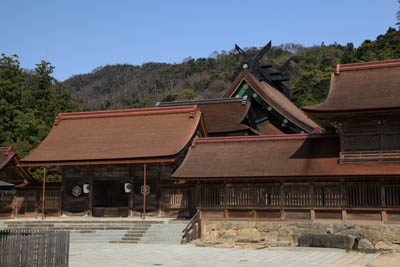 正殿采用被稱為“大社造”這種日本最古老的神社建筑格式,是日本的國寶。出云大社正殿高97米,據說當時是日本第一高建筑。