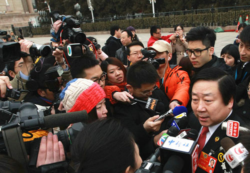 記者: 聽說您與很多國家的政要名人都有交往,10年前還曾經在日本自民黨總部發表演講,當時的情況是怎樣的?