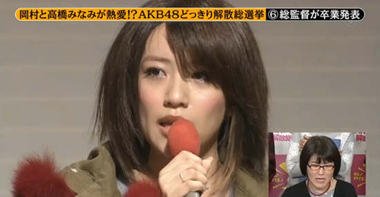 據報道,在6日晚播出的富士臺某綜藝節目中,高橋南承認戀情并宣布畢業。而對此其他成員們反應不一?傔x舉第一名、現任“AKB之顏”的渡邊麻友一臉凝重,二期生宮澤佐江顯得滿是不解。SKE48松井珠理奈和松井玲奈一臉難以接受的表情,NMB48山本彩也呆住了。而即將在新曲中擔任雙center之一的HKT48宮脇咲良吃驚得合不攏嘴,隨后流下熱淚。