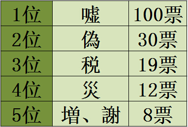 株式會社友之會則在旗下大學生求職網站“t-news”上面向會員進行了調查。大學生心目中的“年度漢字”第一名是“謊”,其次分別為“偽”、“稅”、“災”、“增”、“謝”。選擇“謊”、“偽”主要是因為今年出現了STAP細胞事件、作曲家代筆事件、政治家及朝日新聞事件。而選擇“稅”是因為覺得“這是被稅金搞得團團轉的一年”、“切實感受到了國家沒什么錢”。(編譯:袁蒙 審稿:陳建軍)