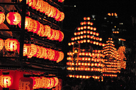 日本三大提等祭之一,七臺太鼓臺陸續登場。