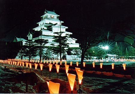 春天,城墻邊的1000多顆櫻花樹競相開放美不勝收。另外鶴城也是2013年播放的NHK第52部大河劇《八重之櫻》的重要舞臺和取景地之一。