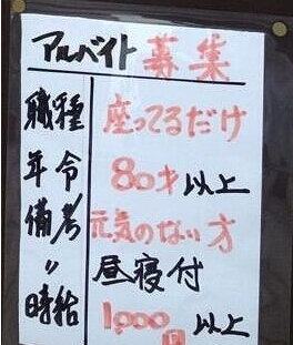 條件很簡單:80歲以上,沒什么精氣神。待遇:附帶食宿,時薪1000。工作內容就是坐著。