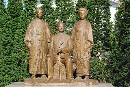 左圖:孫中山·梅屋莊吉夫婦銅像