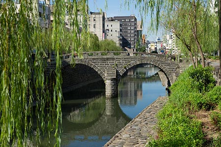 1634年,為興福寺的香客在中島川搭建了長23米,寬4.5米的拱形石橋。此橋被認為是日本首例明朝式拱形石橋,在日本全國影響頗大。