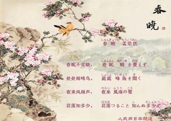 用日語讀唐詩?聽起來萌萌噠!人民網日本頻道將每期為大家送上一首優美的漢詩,今天這首是孟浩然的《春曉》,一起來欣賞吧。