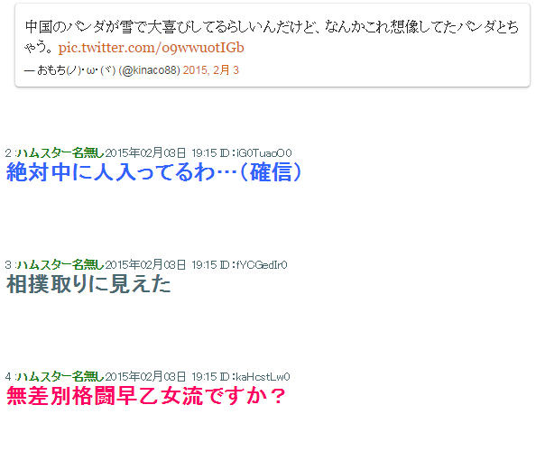 人民網東京2月4日電 2月1日,湖北武漢迎來了入冬以來的第二場大雪,這讓武漢動物園的大熊貓“偉偉”異常興奮。它在雪地里奔跑、打滾兒,手舞足蹈地撒起歡來。隨后,便有網友將這些照片發上了日本推特,并寫道:“這是中國下雪后異常興奮的大熊貓,可是怎么和印象中的熊貓不太一樣呢……”