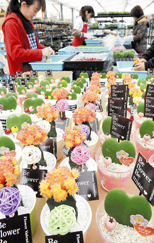 據日本媒體報道,2月14日情人節前夕,岐阜縣瑞穗市的“仙人掌村·岐孝園”商家迎來心形觀葉植物的出貨高峰,各式小盆栽頗受消費者青睞。