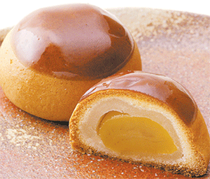 用加雞蛋、砂糖的面皮包栗子餡兒烤成的栗色包子。