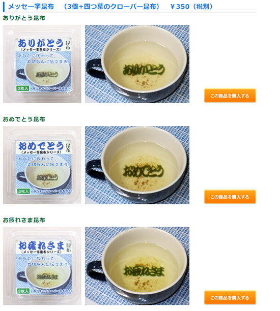 日本北海道新千歲機場特產店最近出現了一種字形海苔,海苔在熱水中脹開后竟然是一句話。這一創意令許多人大呼神奇。