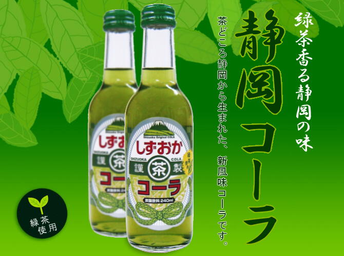 靜岡縣以茶葉著稱。當地的茶葉制造商生產的“靜岡可樂”中加入了靜岡綠茶,是獨一無二的綠色可樂。