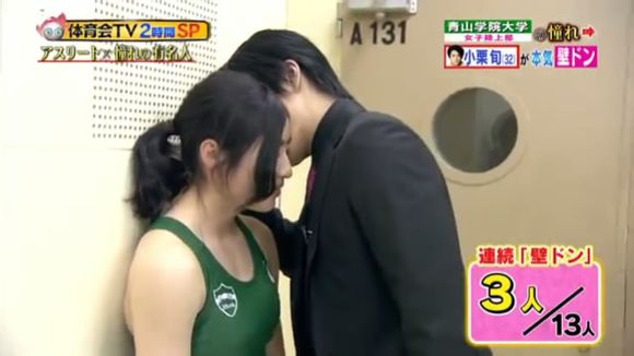 在14日播出的TBS電視節目《炎之體育會TV2小時SP》上,演員小栗旬在青山學院大學女子田徑部“壁咚”14連發,引得女隊員們尖叫不已。