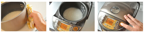 “浸泡”是為了讓大米充分吸收水分,大約10至15分鐘,這一步很大程度上決定了米飯的軟硬度。一些電飯鍋包含“浸泡”的功能,可以選擇浸泡時間的長短。