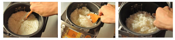 一般的電飯煲在蒸好后會自動跳轉保溫。但是在保溫前很關鍵的一步不能省略,那就是“攪拌”。煮好米飯后,打開鍋蓋用飯鏟將米飯快速而充分地打散,把熱氣放出后再保溫。一方面米粒迅速冷卻,可以保持韌性,吃起來會有嚼勁,看起來也會是一粒一粒的。同時盡量減少米飯與鍋底的接觸面,保溫后不至于影響最底部米飯的口感。