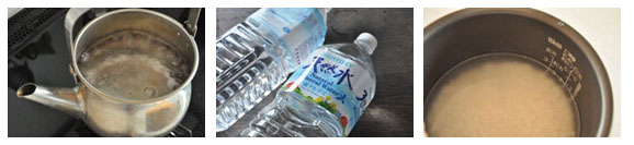 好吃的米飯離不開好的水,如果有凈水器處理過的水或者買來的礦泉水、純凈水最好,沒有的話,可以將自來水燒開后冷卻備用。